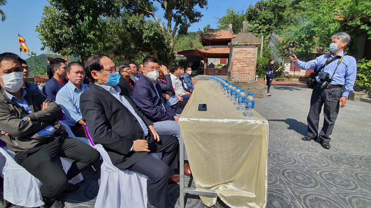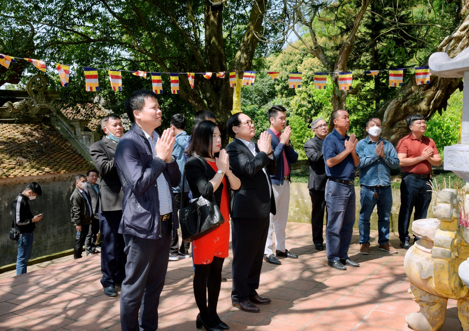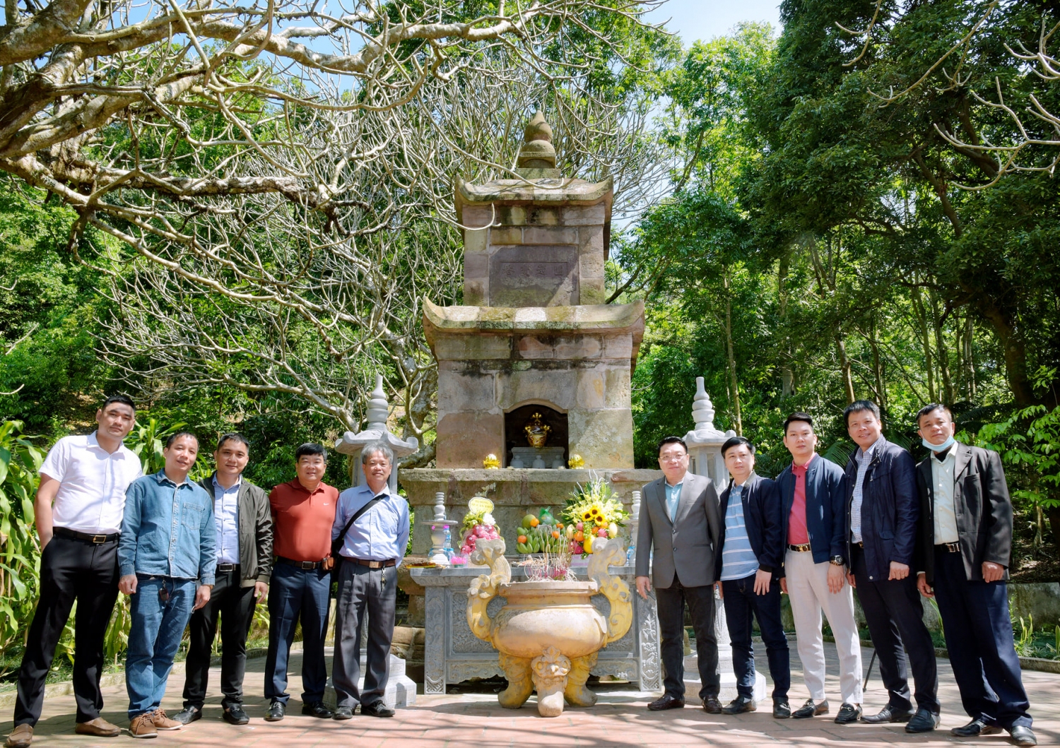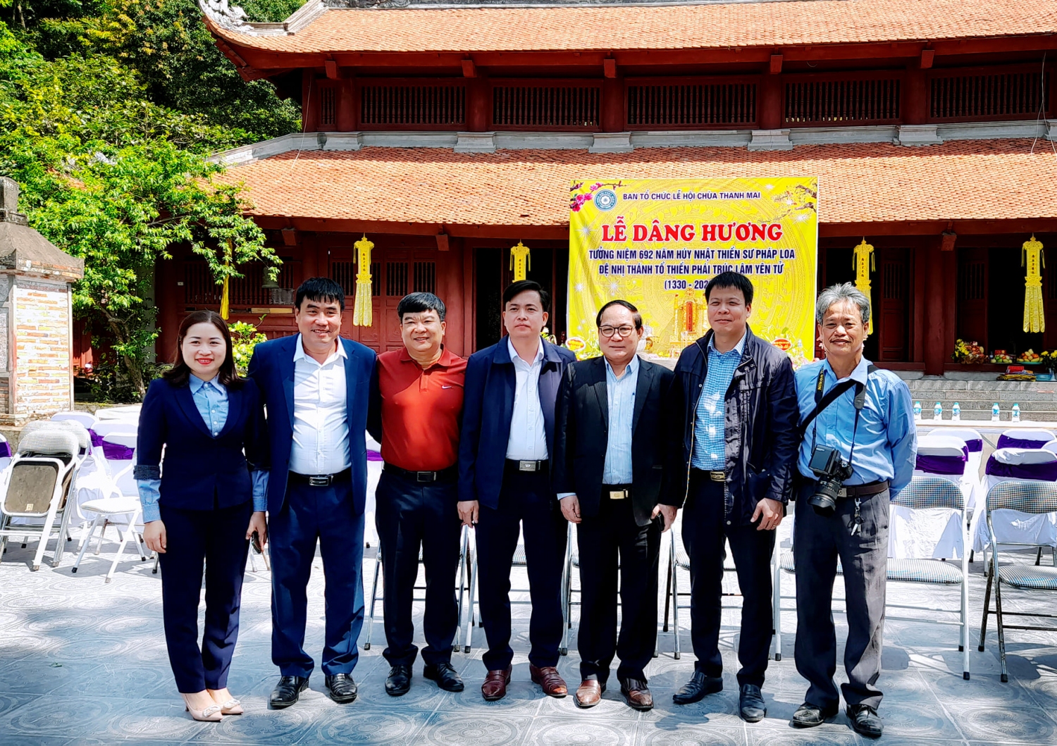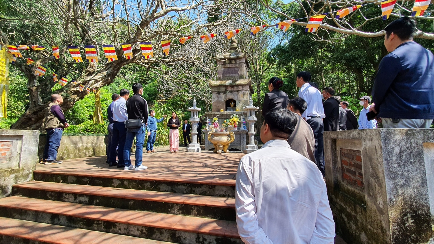 Các đại biểu chụp ảnh lưu niệm tại khu Di tích chùa Thanh Mai